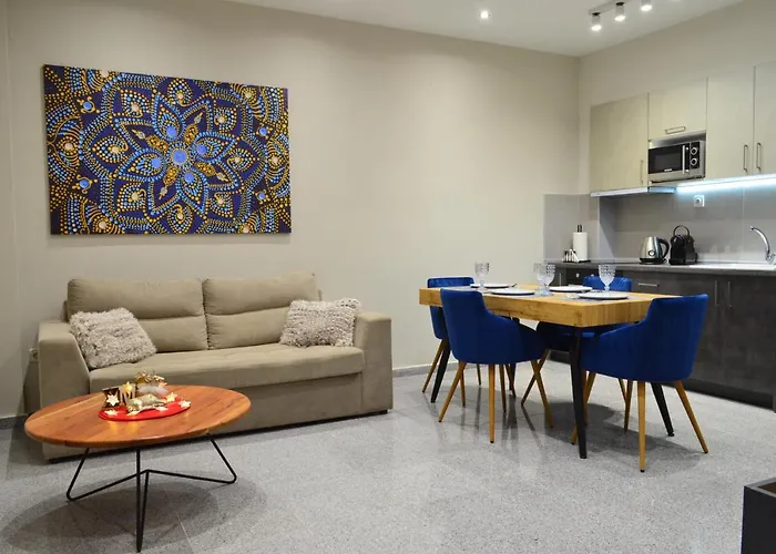 Gli ospiti dell'appartamento possono usufruire dei servizi di self-catering disponibili, tra cui un bollitore elettrico, un frigo e un forno. Il Luxury Suites Collection è accanto alla stazione degli autobus Antigonidon.